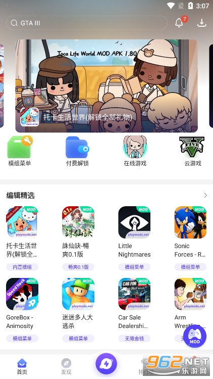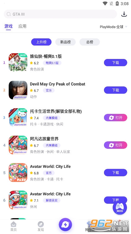 2、playmods还分为三个特色板块:破解游戏、大型游戏和中国游戏,你可以根据版块特色来找寻你想要的游戏