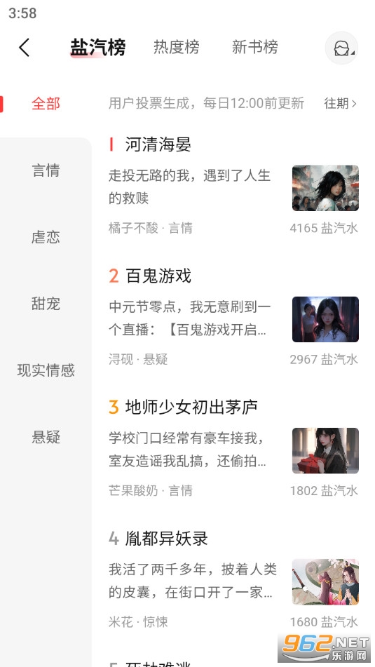 言情、现实情感、悬疑、惊悚、脑洞、科幻、武侠、权谋、玄幻奇幻、民间奇闻......分门别类的故事给你更丰富的阅读体验,打开盐言故事,你就能快速找到想看的故事!