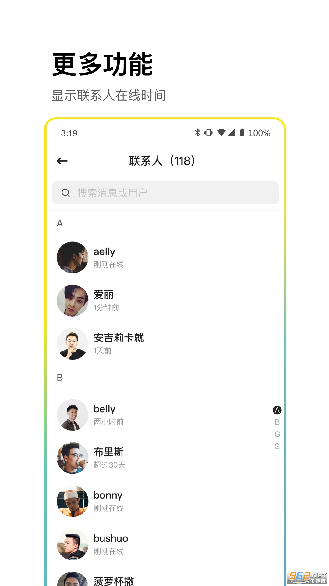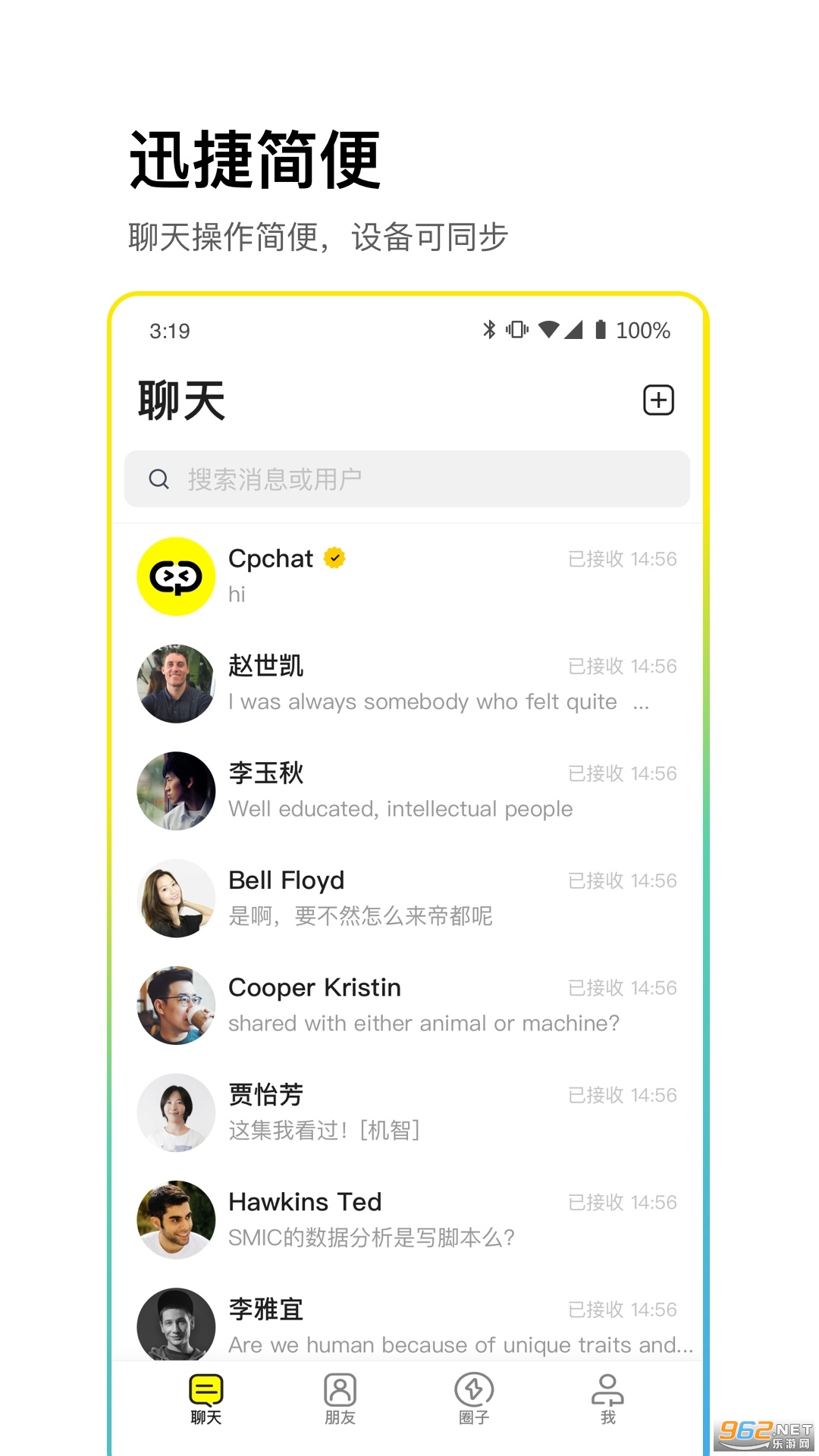 3、所有消息加密传输,时刻保障用户隐私,轻松沟通交流,支持多种聊天方式,一键发布个人动态,轻松管理群组,让即时聊天沟通更安全。