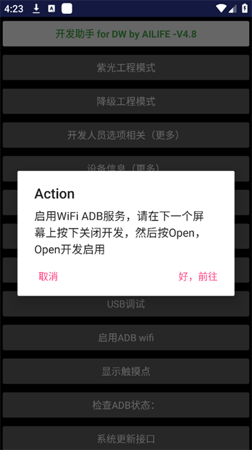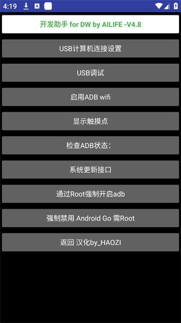 1.下载并安装软件后进入软件,可以看到各项功能,点击【开发者人员选项相关】模式可看到相关功能。