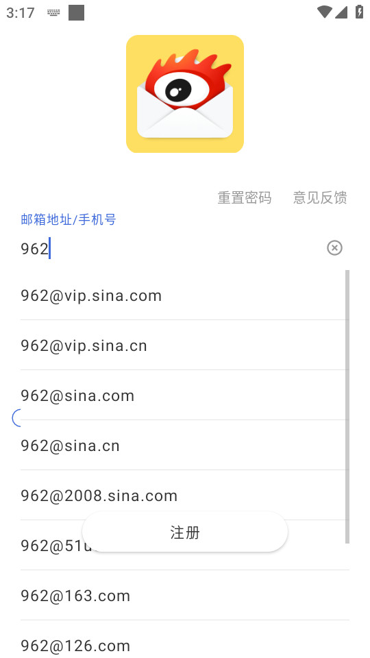 1.下载并打开新浪邮箱app,点击【重置密码】
