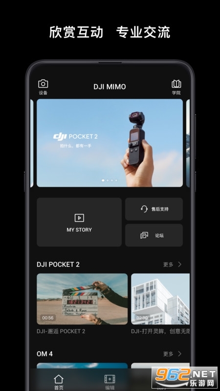 专为大疆手持相机云台设计的一款应用程序。它可以支持连接到Osmo Pocket和其他大疆产品,并提供相机控制、拍摄、编辑和社交分享功能,让用户轻松完成高质量影片的拍摄和制作。