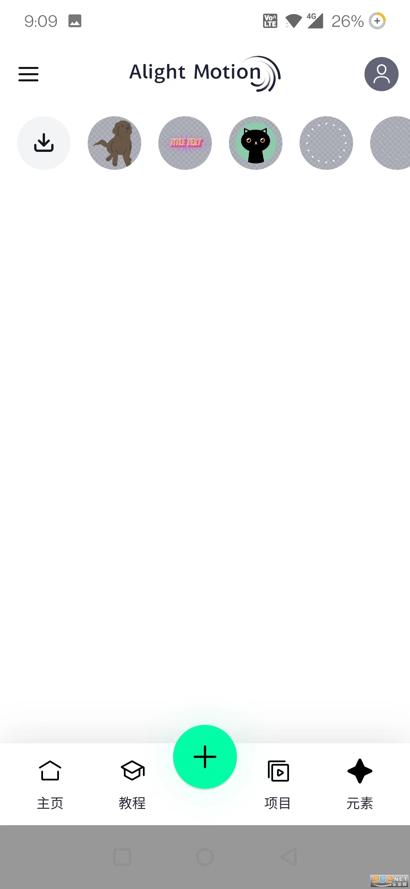 5、新建的项目是没有视频内容的,需要自己编辑,然后点击右下角的“绿色加号”,进行添加编辑;