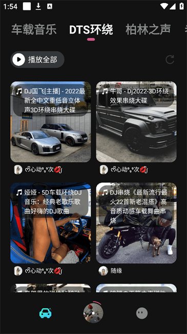 车载音乐库手机app提供了海量动感音乐,为想要体验酷炫车载听歌体验的朋友打造了丰富的歌曲资源库。在这里你可以找到不同类型的歌单,通过简单几步即可在线播放,还有各种不同风格的场景可供切换。