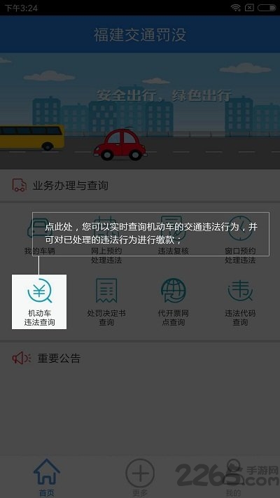 3、违章查询:2265车辆违章查询与交管局实时对接,保证违章数据的准确、专业、安全。