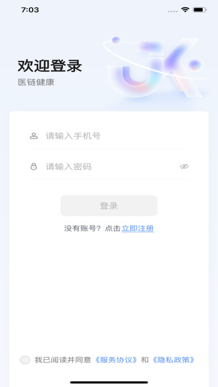1、打开应用查看隐私保护提示,点击同意按钮进入登录界面。
