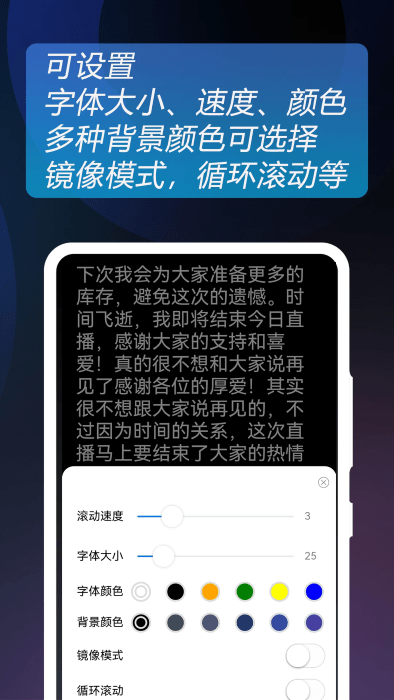 欢畅提词器app不用死记硬背就能让你快速的记录台词,可以自由的设置显示大小,还有播放速度,里面的一些参数都能设置出来,使用起来方便很多,也不怕记不住台词了,能让你在应对屏幕的时候更流畅,非常实用的,快来下载体验吧!