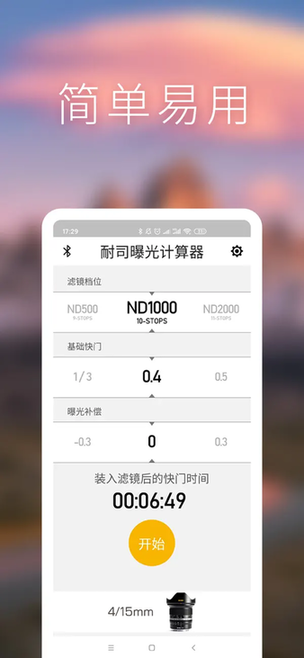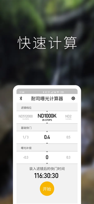 支持快速计算使用nd滤镜后的曝光时间,帮助摄影师在拍摄时迅速调整曝光参数。