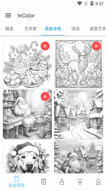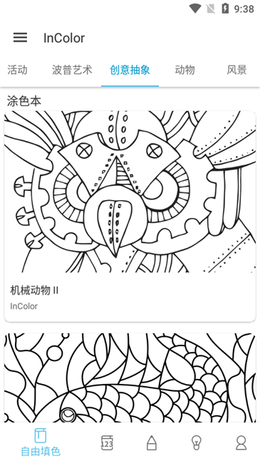 丰富的画作图库:InColor拥有大量的画作供用户选择上色,包括曼陀罗、动物、鸟类、花朵、人物等各类主题,每周都会更新,确保用户有源源不断的精美图案可供选择