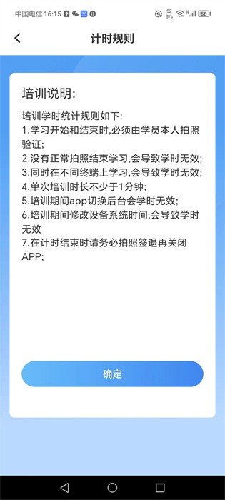 1.学习开始和结束时,必项由学员本人拍照验证