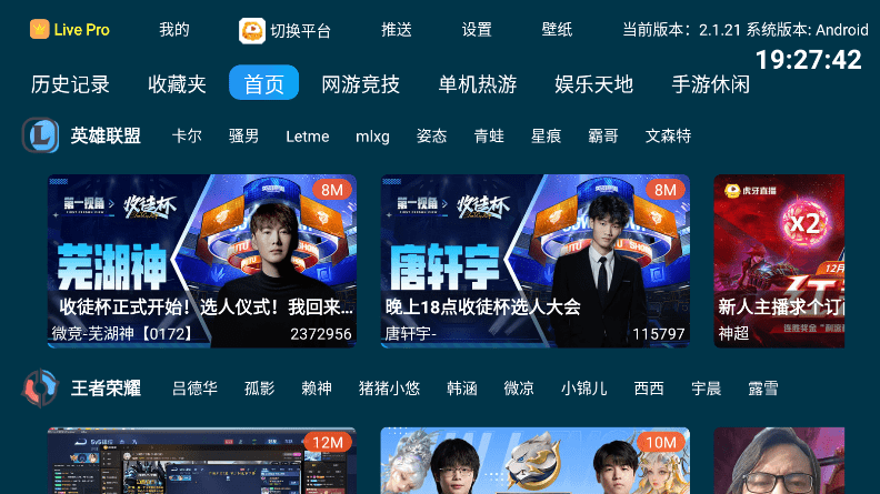 第三方的虎牙TV版软件,电视盒子专用版本,不是云视听虎电竞app,可以直接在电视上观看精彩的虎牙直播,高清蓝光,给你好的观看体验,有需要的朋友可以下载试试。