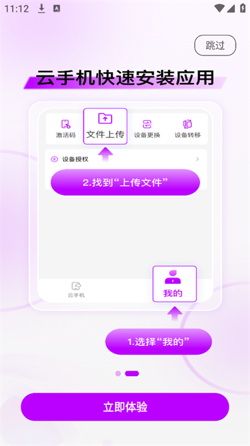 2.点击右上角功能页,“上传文件”可以将文件和拥有上传到云手机