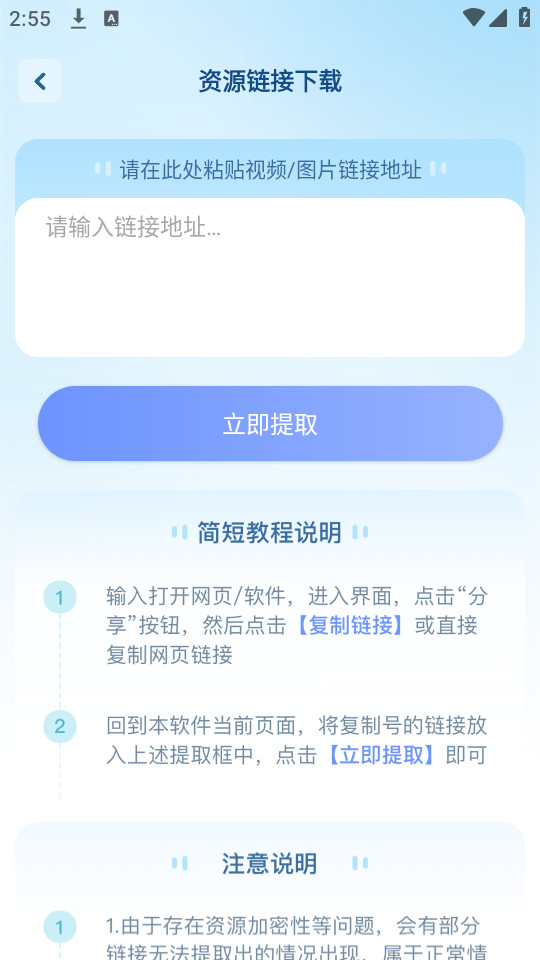 输入链接的地址,点击立即提取就可以了