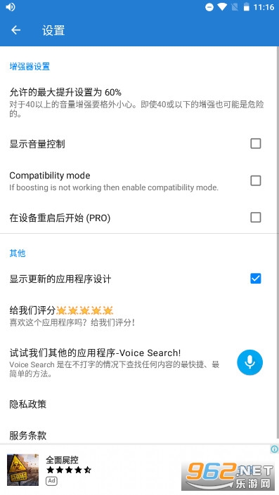 注2:此应用程序不用于调节通话的扬声器音量(我想通话应当有自己的增强器),而是用于调节音乐、电影和应用程序的音量。