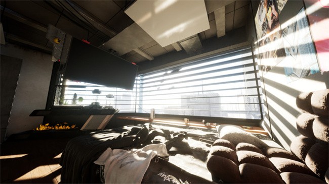 赛博房间拥有高度复杂的场景设计,包括未来感十足的建筑、霓虹灯光、反射表面等,充分展示了虚幻引擎5的强大渲染能力,同时对设备性能提出挑战。