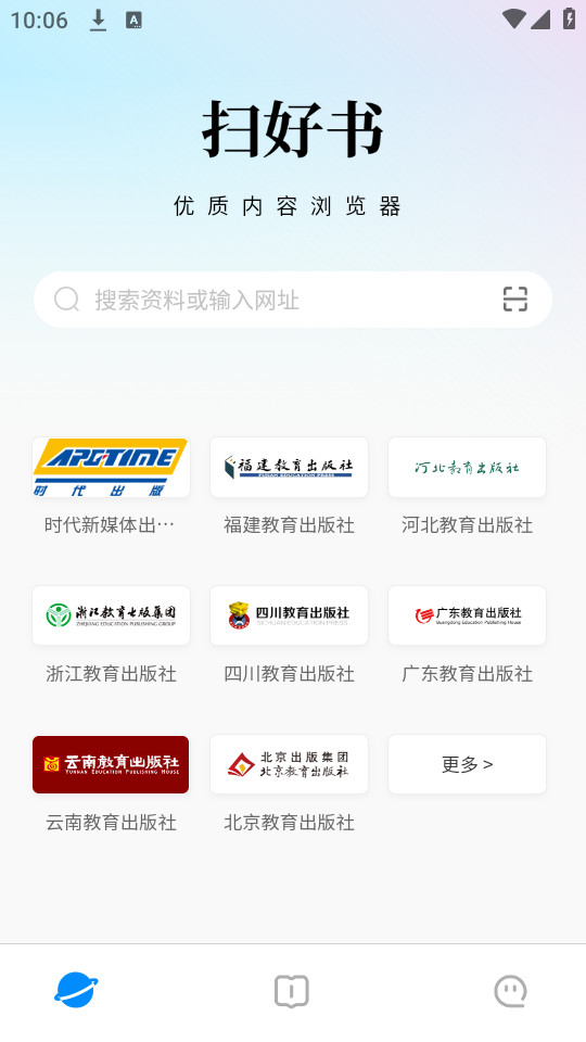 善版云APP是一个聚合优质浏览器,您可以通过“扫好书”访问经过精心筛选的优质内容白名单网址。例如,您可以通过扫好书访问精选的出版社的优质内容网页。
