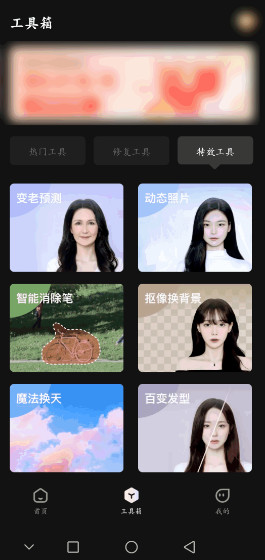 1、它除了有各种特效风格以及黑白照上色功能之外,还有老照片修复、动态图片、抠图换背景、百变发型等其他的工具,感兴趣的小伙伴可以尝试一下呀。