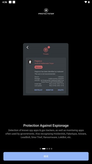 检测已知的间谍应用程序以及政府或执法机构经常使用的更多应用程序。