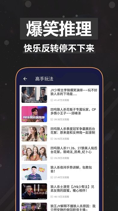 超火爆烧脑推理社交桌游。多人参与的,以语言描述推动的、较量口才和分析判断能力的策略类桌面竞技。通常的版本需要7-18人参与。狼人杀角色更丰富。竞技分为两大阵营,狼人和村民。村民方以投票为手段投死狼人获取最后胜利,狼人阵营隐匿于村民中间,靠夜晚及投票消灭村民方成员为获胜手段。快来下载试试吧!