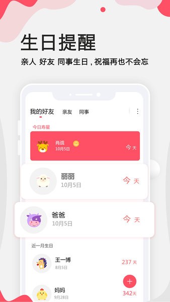 1、构建多维度的生日信息管理体系,支持亲友、同事、明星等不同社交圈层的生日数据分类管理。