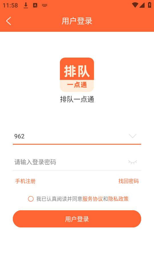 1.下载安装并打开排队一点通app,点击【同意】同意隐私政策