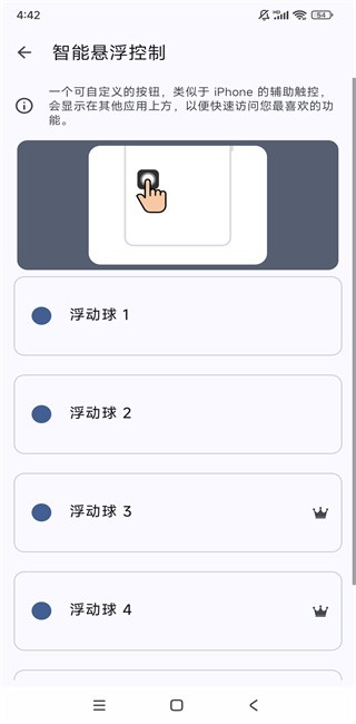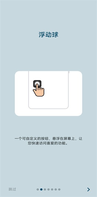 浮动按钮(辅助触摸):类似于 iPhone 的 AssistiveTouch 的可自定义按钮,显示在所有其他应用程序之上