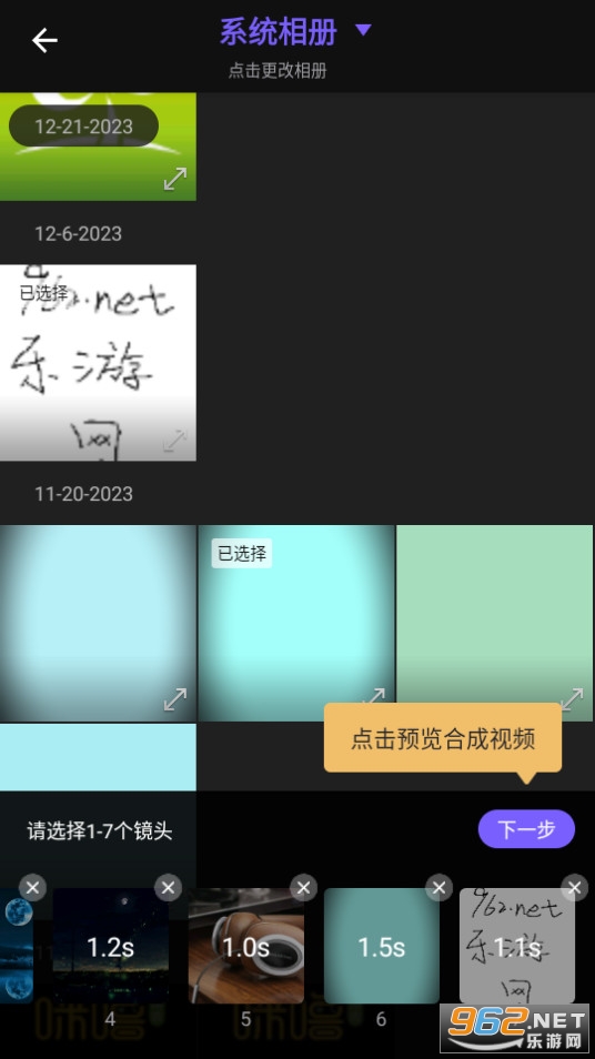 1.进入首页,点击新建影片,选择需要剪辑的内容,选择下一步进入剪辑页面