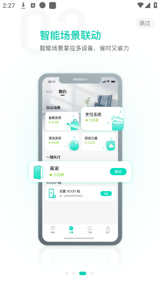 华帝智慧家APP场景联动涵盖备餐系统、清洁系统、烹饪系统、厨房云盾、一键离家五大场景,实现设备之间联动功能,随时随地掌控设备,畅享智慧厨房乐趣。