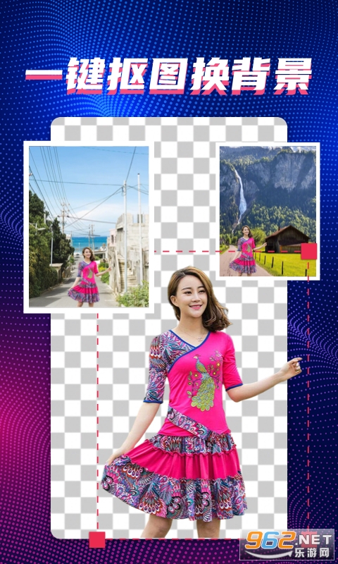 随时使用抠图工具,魔法抠图可以快速更换图片背景。
