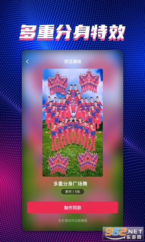 人身多重分身特效,制作广场舞视频的时候可以一键添加多重分身特效;