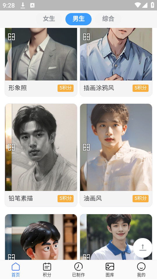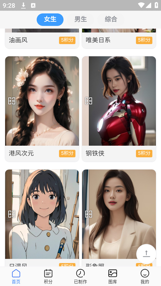直接滑动选择你想要的特效的图片,右下角有需要使用的积分提示,积分足够的话直接点击就可以转换了