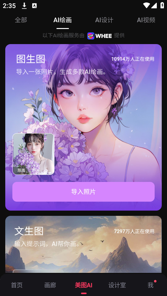 创意绘画神器,实现绘画自由。图生图,免关键词也无需排队,驯服AI超简单!涂鸦生图,随意涂鸦秒变画作;AI头像,更像本人,更多风格~