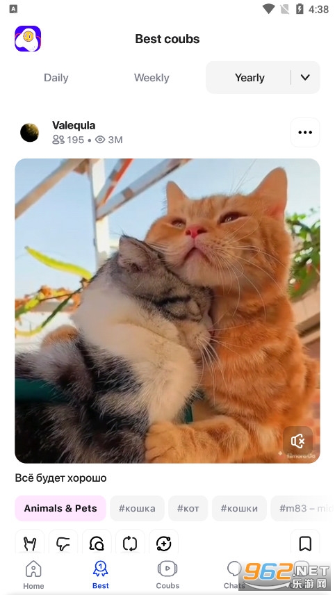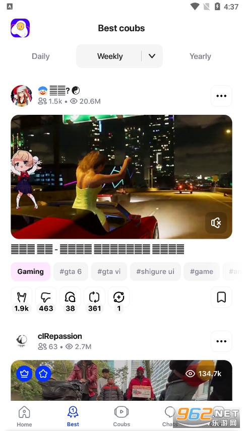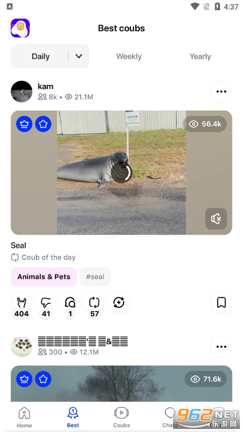 Coub是非常有意思的一款集社交、视频剪辑及动图制作于一体的软件,提供一个非常全面的社交交流平台,在这里你能够与来自世界各国的使用者们进行探讨,找到彼此共同感兴趣的话题,也可以在其中完成一些有意思的创作。