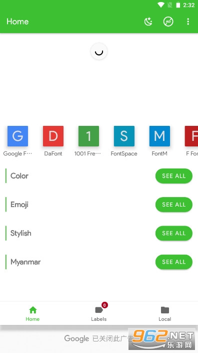 4、重启后重新打开zfont,点击Home页面,选择emoji,再点击See All(看全部),按照这个流程操作之后,zfont的emoji表情包就已经可以正常使用。