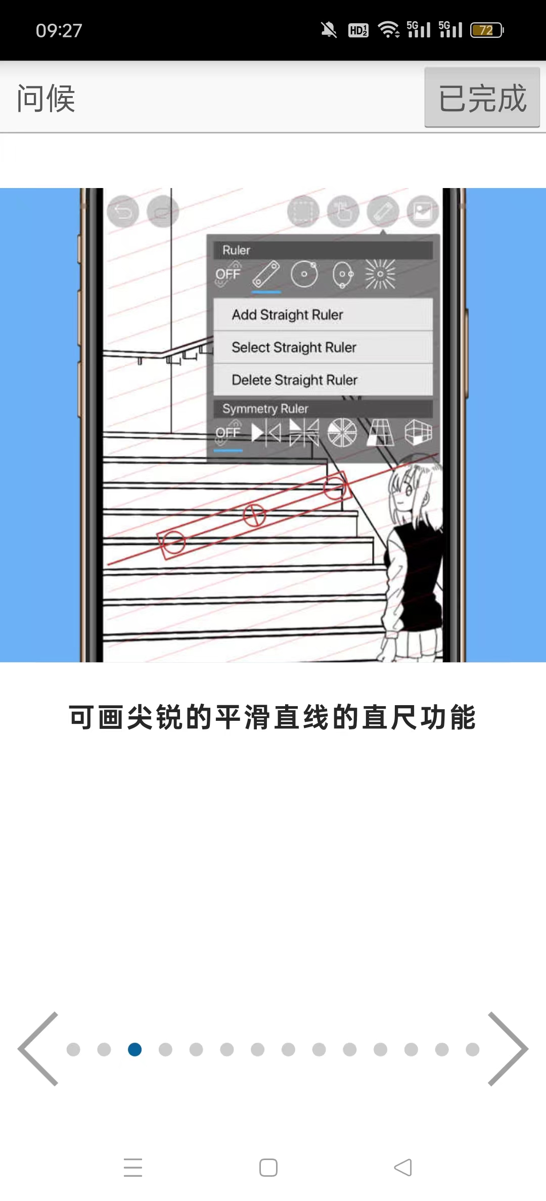 用于绘制图形等的标尺工具功能(以前的标尺,圆形标尺,椭圆标尺,浓度线标尺)。