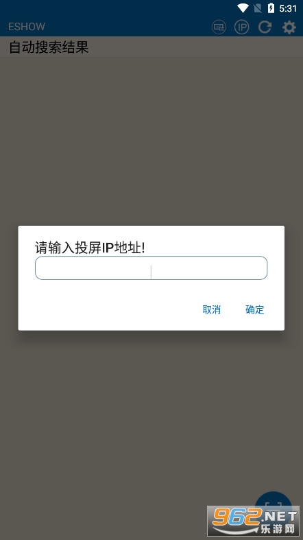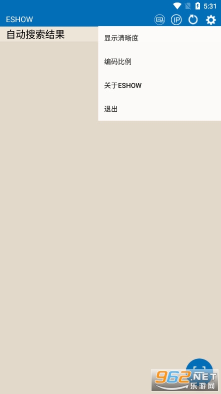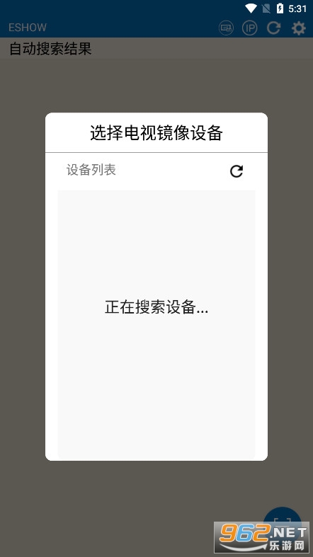 2、在ESHOW的主机待机画面上方,显示了主机的选择镜像设备。投屏IP地址、页面刷新以及功能设置。