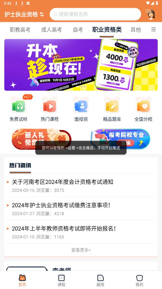 一站式服务:上岸直通车APP整合了学历提升、职业考试及成人教育等多方面的培训资源,提供从报名到备考、从学习到考试的一站式服务,让用户无需东奔西走,即可享受全方位的教育培训。