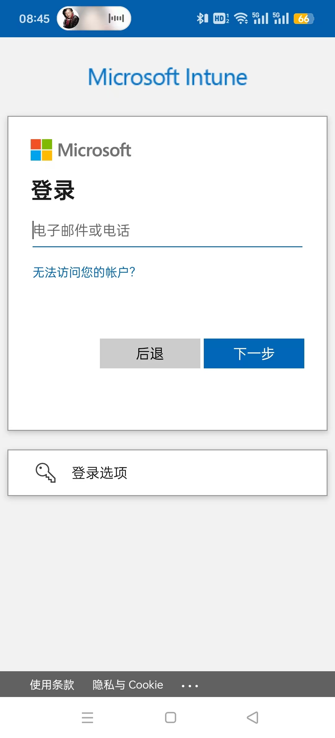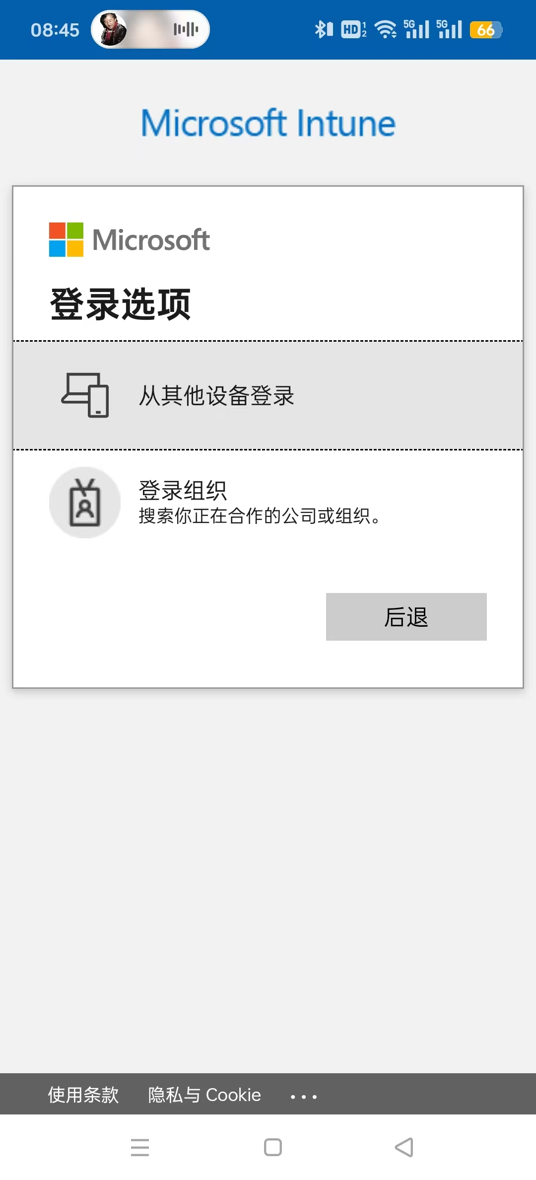 3、在【登录选项】这里,有从其他设备登录和登录组织两个选择,其他设备是指你从IOS苹果端、MAC或是windows系统登录,而组织则主要指的你所在的公司架构。