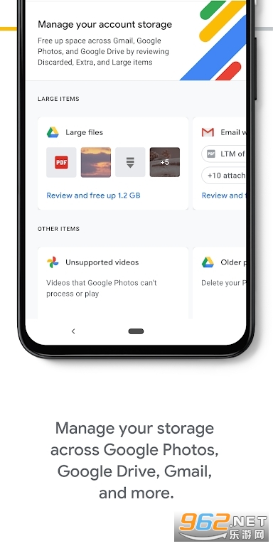 &8226;使用每个Google帐户随附的免费15 GB存储空间,自动备份手机上的重要内容,例如照片,联系人和消息。 如果您打破,丢失或升级手机,则可以将所有内容还原到新的Android设备。