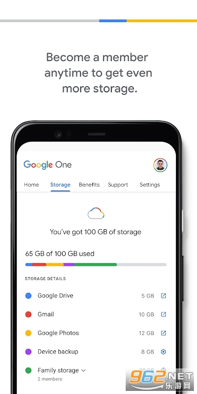 为大家提供Google One下载,谷歌旗下的云存储服务软件,里面包含了非常多的功能,可以让用户免费存储视频,照片,文件等等,也可以通过此程序轻松管理手机应用,十分方便,需要就下载吧!