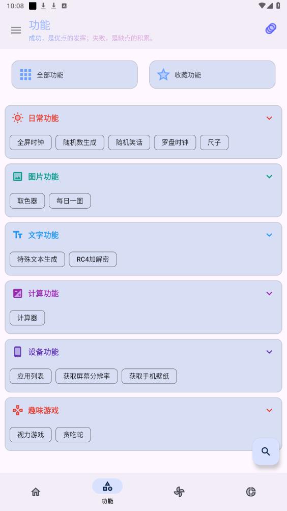 《轻昼app》是一款创新性的用户自制小盒子软件,允许用户根据自己的喜好和需求,自由选择并组合各种功能模块,如日常实用工具、图片编辑、文字记录、计算器、设备连接以及趣味游戏板块,包含全屏时钟,随机数生成,随机笑话,罗盘时钟,尺子,取色器,每日一图等实用功能!
