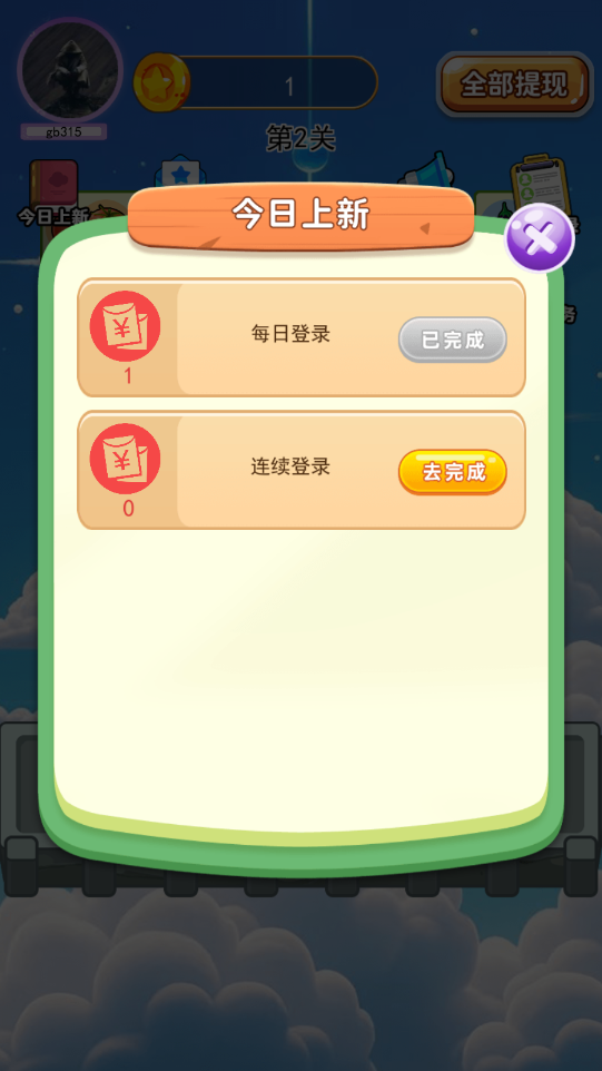 进入软件后,可以直接玩三消闯关,通关,领取红包奖励