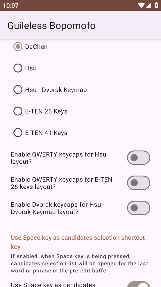 我实作了知名开放原始码专案「新酷音输入法」的大部分功能,提供Android平台上一个有别于其他同质产品的选择: