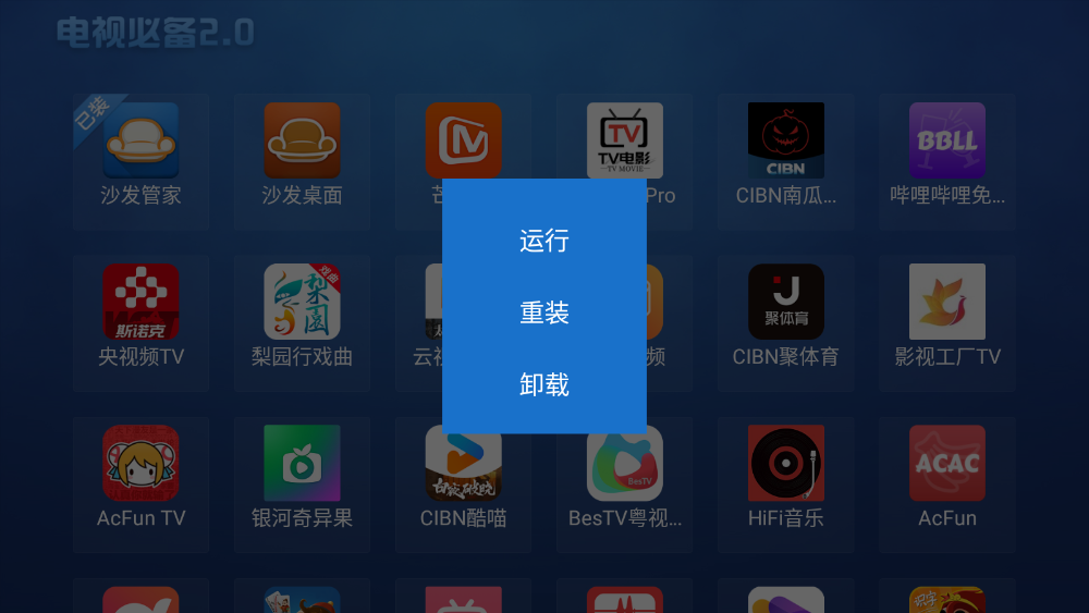 电视必备是运行在智能电视和电视机顶盒上的一款非常实用的电视应用管理工具,它会为你推荐当下非常热门的电视软件,如爱奇艺优酷、QQ音乐TV版、电视淘宝、电视家2.0等相当实用的电视必备软件,你可以一键免费下载至智能电视上,非常的方便快捷。此外该软件还提供了自动更新、运行、重装、卸载等功能,你可以很容易的管理电视中的各种应用。