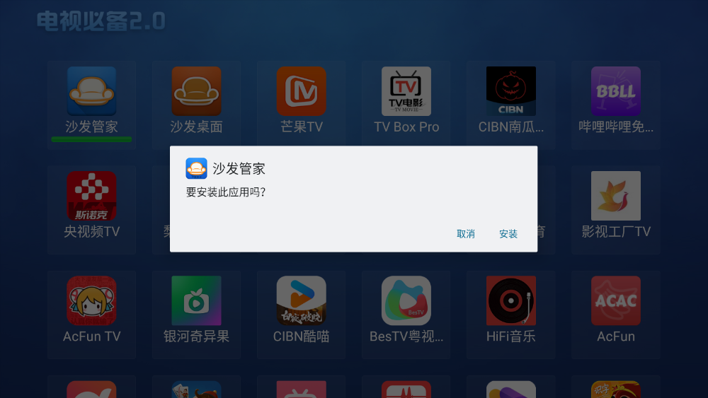 一键安装,简单快捷:用户只需在电视必备2.0中选择想要安装的应用,点击一键安装,即可快速将应用下载并安装到智能电视或机顶盒上,省去了繁琐的搜索和下载步骤,大大提升了使用效率。