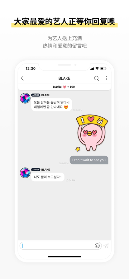 Bubble for BHEnt提供了即时互动的功能,粉丝们可以实时接收到艺人们的消息更新,包括文字、图片和视频等多种形式。这种即时互动的方式,让粉丝们仿佛与偶像身处同一空间,共同分享生活的点滴,增强了粉丝与偶像之间的亲密感。