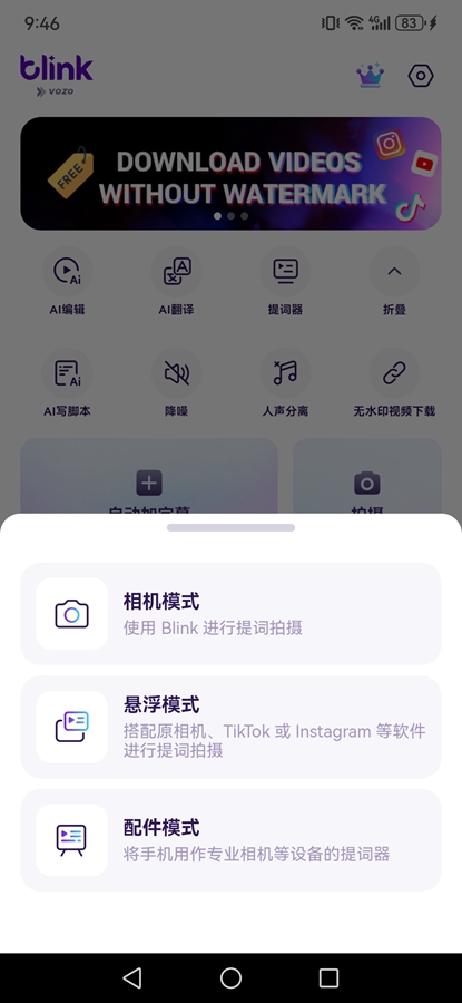 《Blink by Vozo解锁高级版》是一款集视频自动加字幕、AI翻译、提词器、AI写脚本、人声分离以及视频无水印下载等多功能于一体的视频编辑与创作软件。它凭借强大的AI技术和丰富的功能,成为了众多视频创作者、自媒体人、教育工作者以及企业宣传人员的得力助手。
