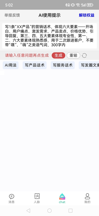 十、AI功能:AI改写、AI扩写、AI写文案、AI写话术、AI写报告、AI写总结、AI写发言稿、AI写诗词歌赋、AI智能回复、AI客户分析、AI写作文、AI写PPT大纲及查询各行各业专业知识等