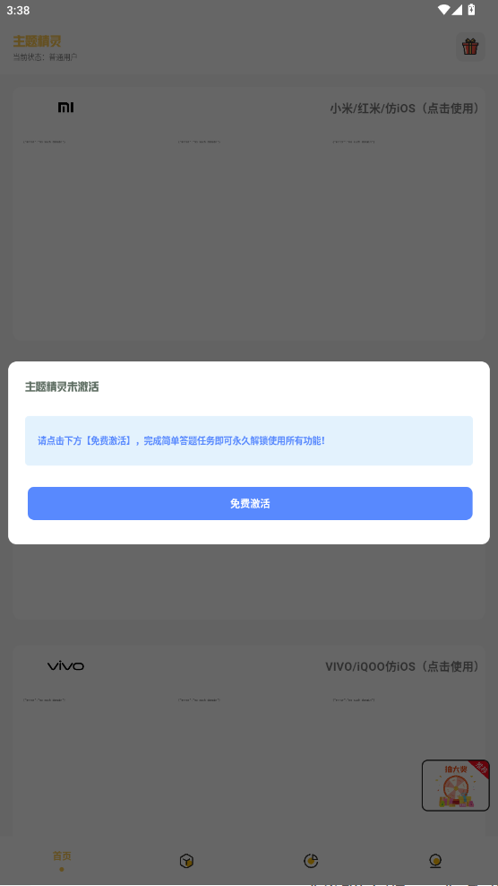 打开主题精灵app,点击选择所需功能,比如首页里面的小米/红米仿ios