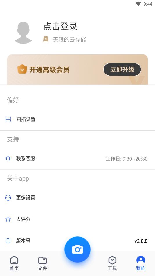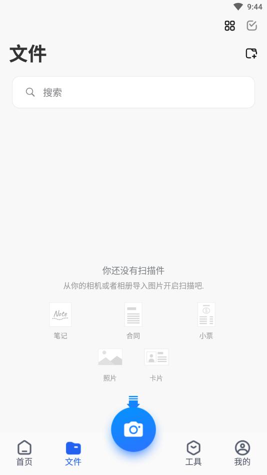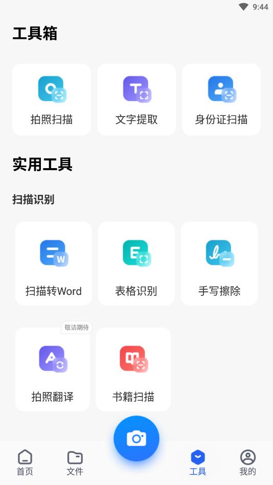 打开手机扫描王app,点击拍摄图标